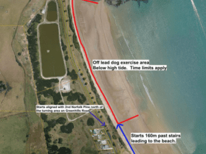 In the area of Godfreys Beach below high tide north of the alignment with 13 Green Hills Road, extending approximately 500m north to the Rocks – dogs may be exercised at the following times without a […]