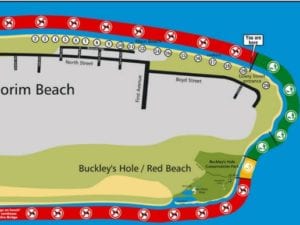 Dog off leash beach area is located between Lower Neill Street and Russell Street, beach access 269 to 276.