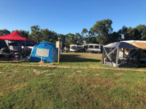 Dog friendly camping site in Carnarvon. Great grassy site with plenty of shade available. Access to water & toilets and suitable for both caravans and camping